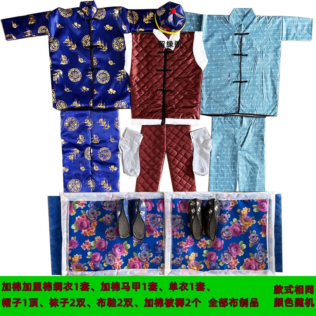 留缘阁新款布寒衣套装高档绸缎衣全套男士寒布衣祭祀用品大全